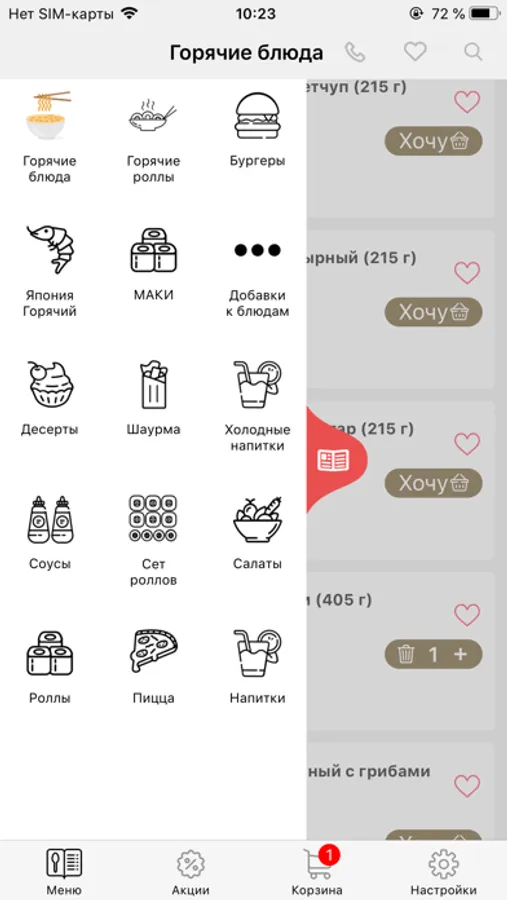 З додатком Kin City замовляти роли, сети, піцу легко, оскільки в додатку доступні детальні описи і фотографії страв.