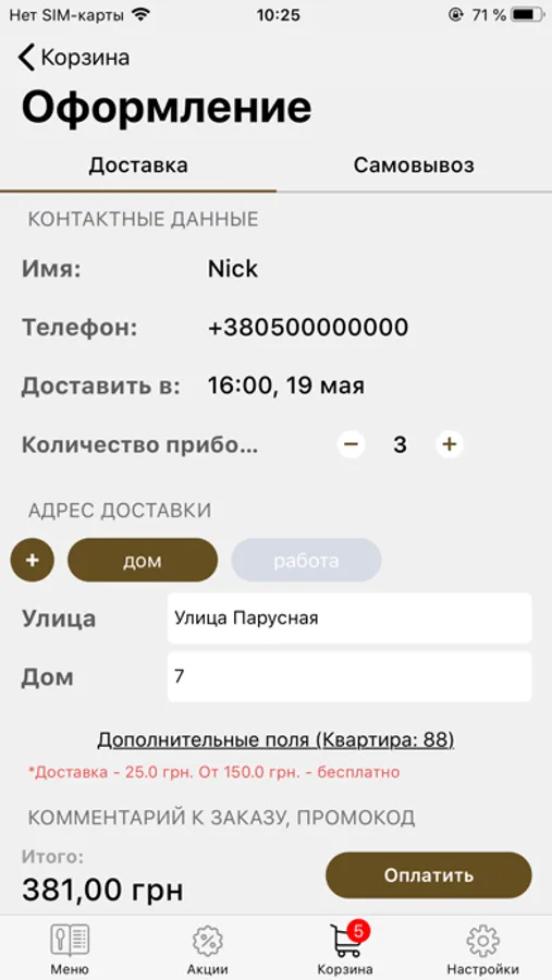 • встановити бажаний час доставки замовлення за вказаною адресою;