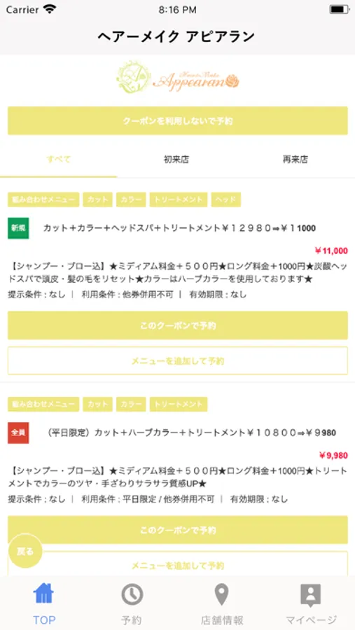 お得なクーポンが配信されます。ネット予約時にクーポン利用での予約も可能なので来店時もスムーズに施術頂けます。