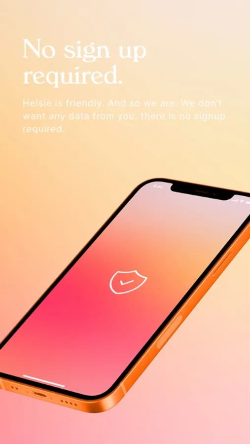 Helsie is friendly. And so we are. There is no signup required.