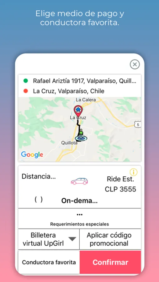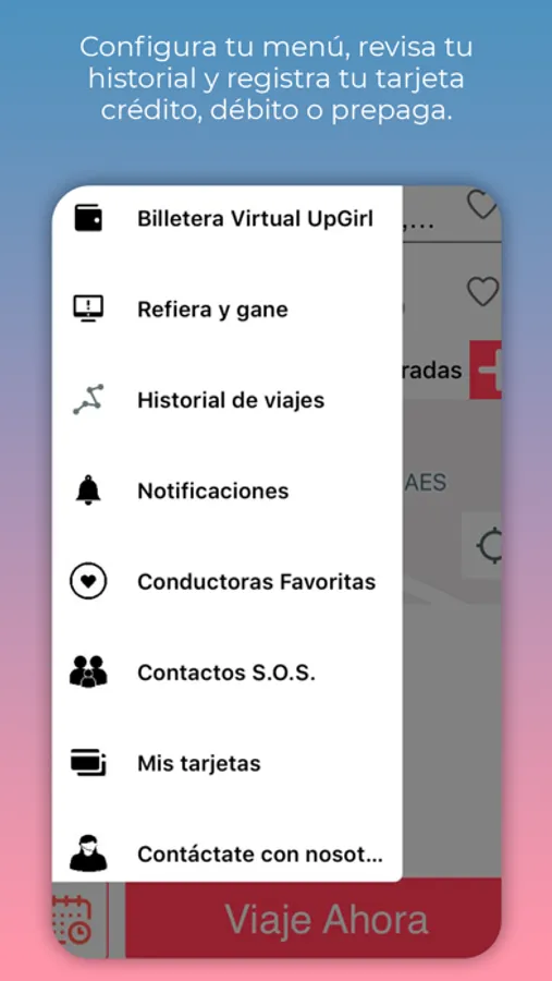 UpGirl es una app única en el mundo, ya que no sólo permite un servicio dado por mujeres para viajes y envíos/repartos exclusivo para mujeres y niños, sino que también ofrece la asignación de una conductora fija para tus viajes recurrentes suscribiéndote al servicio UpGirl Match. Nuestra misión es que sea seguro y justo, para eso: tus antecedentes deben ser validados también, eliminamos el efectivo, implementamos botón s.o.s y nuevas funciones pro-seguridad: como conductora favorita.