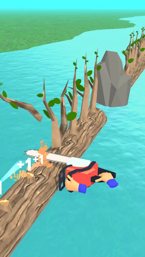 The Game is about cutting tree branches and reaching finish, you need to avoid rocks, stones and cut tree branches, as much as you can!