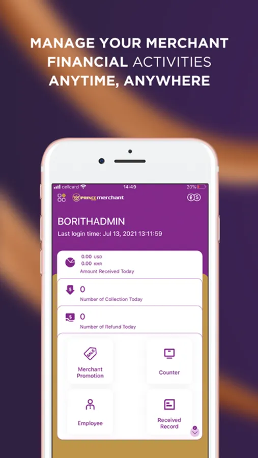 You can visit PRINCE Bank to complete the information to get the merchant login username and password to sign up with PRINCE Merchant APP.