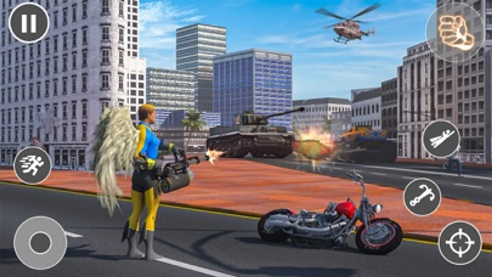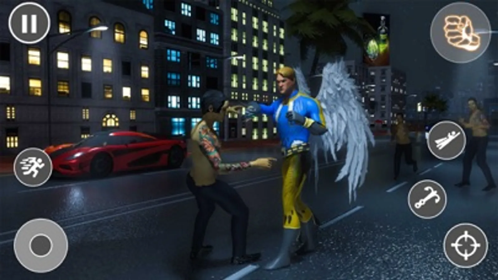 Perform superhero crime in the sin city, steal the luxury cars, drive on highways, drift in the streets, and chase the crime mafia. In this angel superhero city simulator, the san Andreas city is full of crime mafia doing businesses like running clubs, dealing in drugs and weapons. You are only the one who has the superpowers fight and beat them to destroy their businesses and make your hold in the san Andreas city and Miami city. In this grand city thug gangster crime game, you will earn money in fighting with the gangsters gangs and with the police you have super wings to fly, spider rope hero power to stick and jump from building to building. Some city thugs drive amazing cars or a motorbike. You have to identify them and find them to fight, accomplish the missions, earn money, you will experience Rob, Kill and shoot and fight all the criminals. Stealing auto cars then use them for racing through streets shooting down gangsters and escape from the police by driving the super cars.