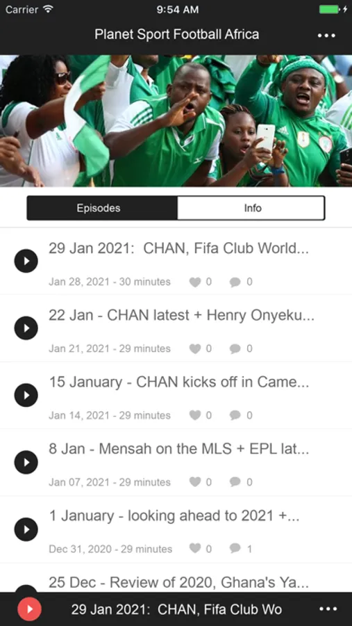 The Planet Sport Football Africa app allows users to listen to the current episode and all archived episodes of our podcast.