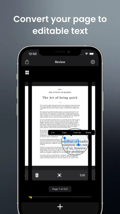 - No data in your documents will ever be sent to a 3rd party or us. Everything, including the text recognition, will be done directly on the device. We value privacy!
