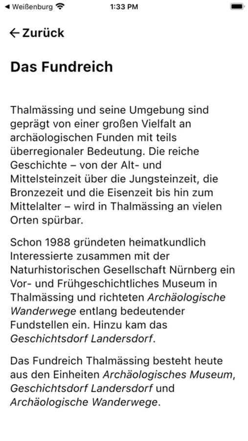 Der Multimedia-Guide "FUNDREICH Thalmässing – Die App" führt dich durch die Geschichte der Thalmässinger Region – von der Altsteinzeit bis zum Mittelalter.