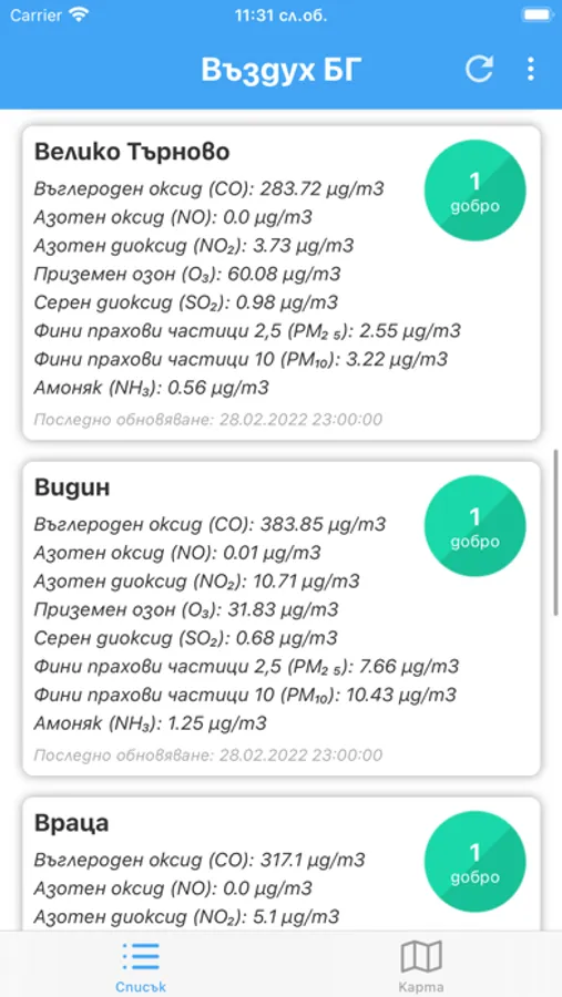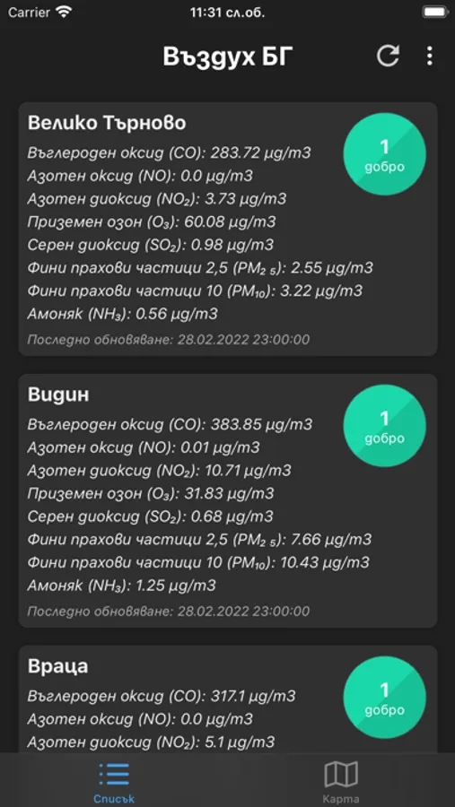 Приложението показва подробна информация за нивата на фини прахови частици и други данни за замърсяването на въздуха в българските градове. Бързо и лесно научавате за качеството на въздуха във всеки един час. С вградена карта можете да следите състояните на въздуха над цялата страна. А с новите уиджети можете да виждате качеството на въздуха в избрани градове, без дори да отваряте приложението.
