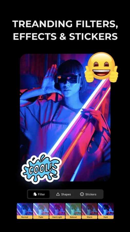 Use trending filters for your photos as well as videos, awesome effects, white space, background with patterns, stickers, texts, shapes, presets and more!
