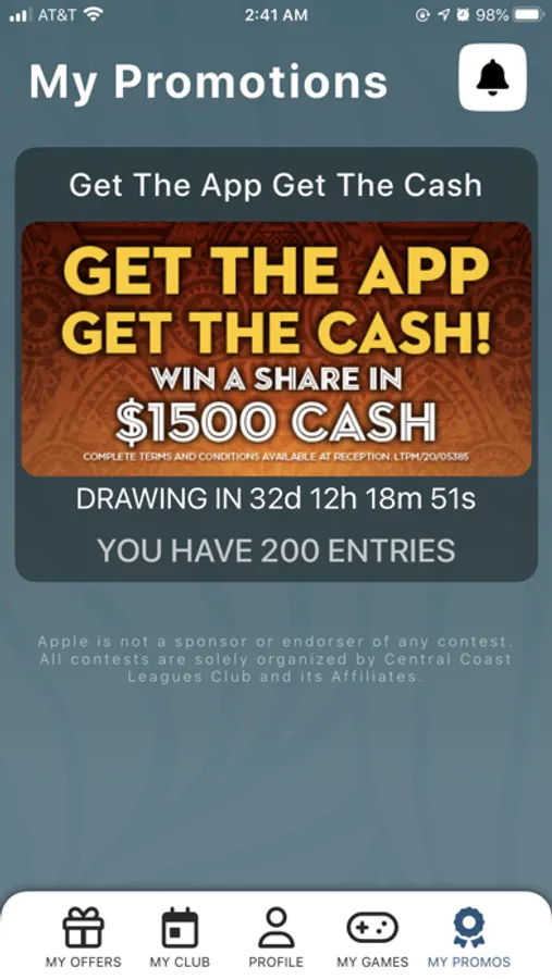 * Be part of exclusive interactive Club Promotions, sent to your phone via push notification for redemption at the venue counter