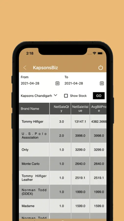 Mobile Version for Kapsons customers - Kapsons customers now track daily sales with several filters.