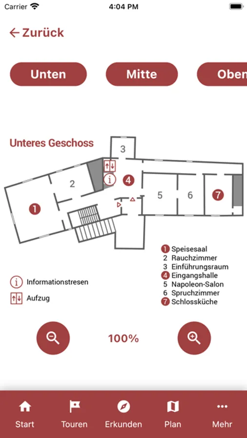 - Rundgang mit dem Rollstuhl: Audioführung durch das Schloss abgestimmt auf Personen mit Rollstühlen, Rollatoren und sonstigen Geh-Hilfen.