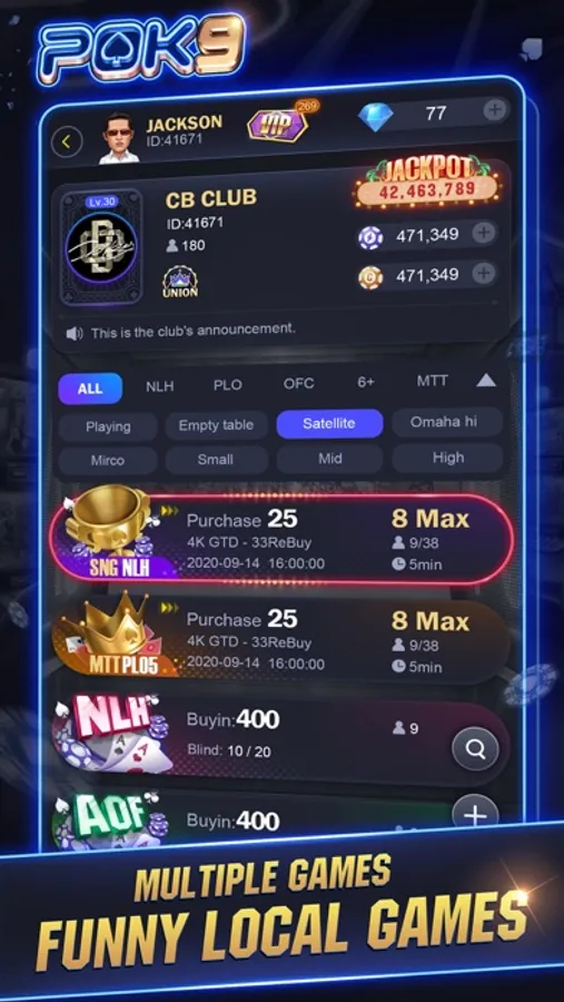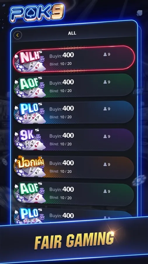 POK9 is a gaming platform that including Texas Holdem and special Thai local games, such as, Texas Holdem, AOF, Omaha, 9K etc. Most of games having jackpots, let’s try our luck to hit them while playing games!