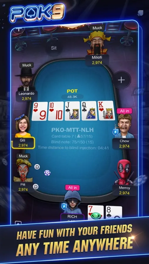 Play poker with friends online anytime and anywhere you like. Specifically designed for different levels of players, from beginners (lobby game) to experts (club game). POK9 suits any player who wants to practice and challenge friends.