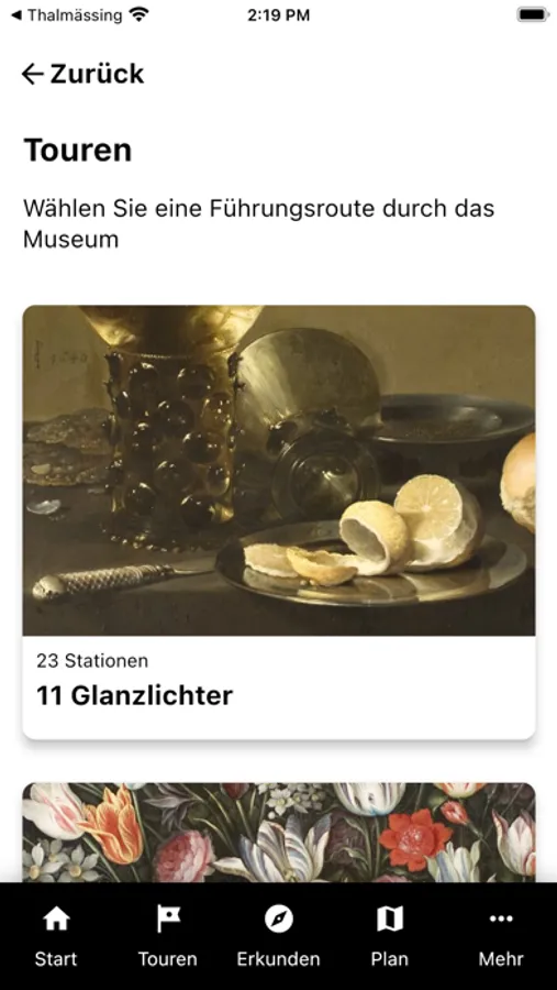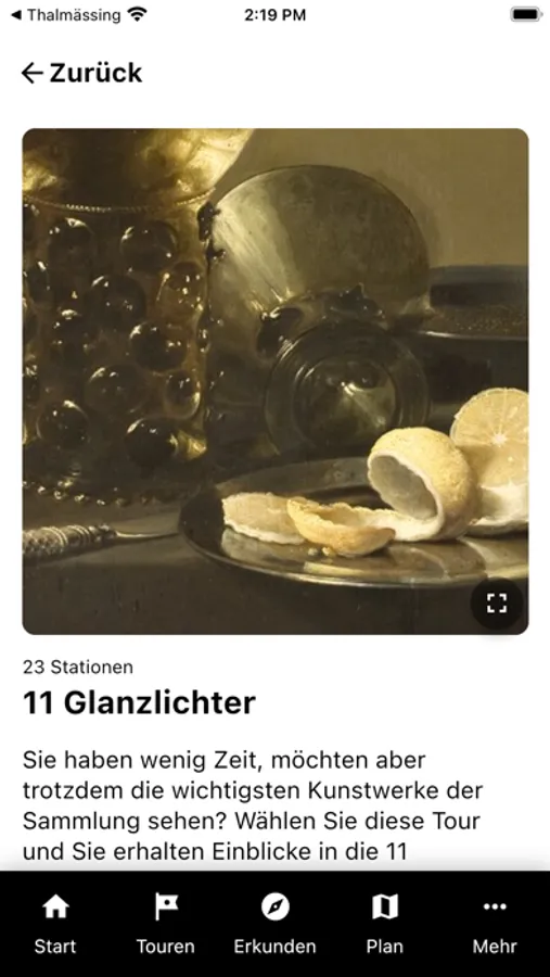 Erfahren Sie mehr über die ausgestellten Gemälde und Skulpturen. In den Touren werden Sie von Objekt zu Objekt geleitet. Für mehr als 40 Objekte der Gemäldegalerie sind in der App Informationstexte zum Lesen und Hören abrufbar.