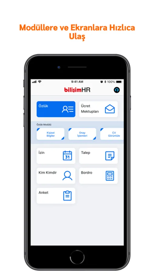 BilişimHR IK profesyonellerinin ihtiyaç duyduğu tüm modülleri bir arada barındırıyor. Gelişmiş modüler altyapısı ise işletmelerin IK süreçlerinde kurum işleyişlerine uygun bir şekilde kullanım imkanı sunuyor. Esnek altyapısı sayesinde kurum kültürüne uyumu kısa zamanda yakalıyor!