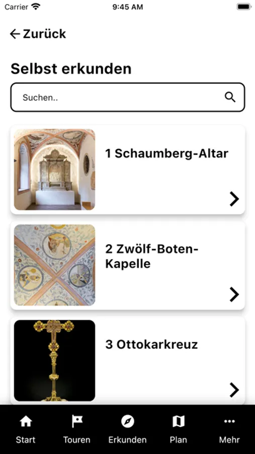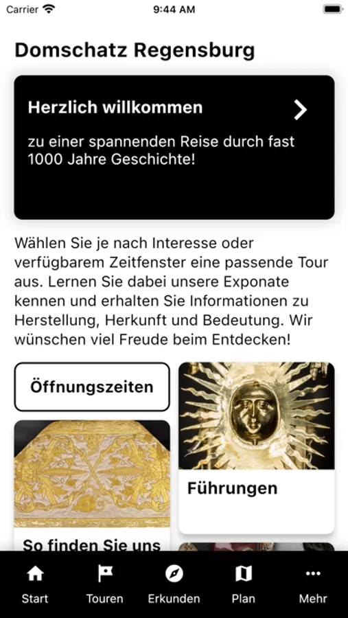 Außerdem erhalten Sie Informationen zur Geschichte des Domschatzes und den aktuellen Öffnungszeiten. Ein übersichtlicher Raumplan schafft Orientierung und ermöglicht einen individuellen Rundgang. Ihr Wunschobjekt wird Ihnen unter der Option „Freies Erkunden“ vorgestellt. Ein Lageplan erleichtert die Anfahrt und die Zugangssituation zum Domschatz. Falls Sie weitere Freizeitaktivitäten in der Stadt Regensburg planen, hält die App Tipps für Sie bereit.