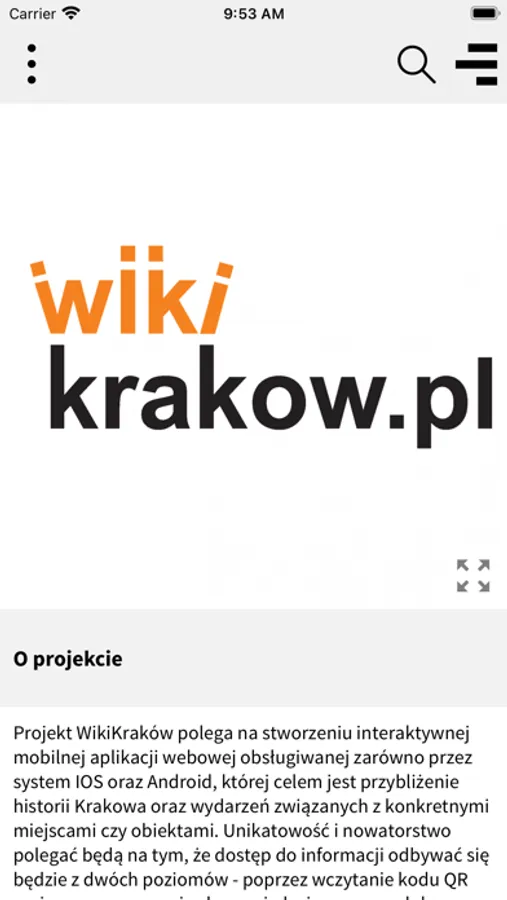 WikiKraków – odkoduj historię Miasta! Aplikacja przybliży historię Krakowa oraz wydarzenia związane z konkretnymi miejscami czy obiektami. Na WikiKraków można znaleźć informacje dotyczące muzeów, zabytków, życia muzycznego, festiwalowego, kabaretowego i teatralnego Krakowa.