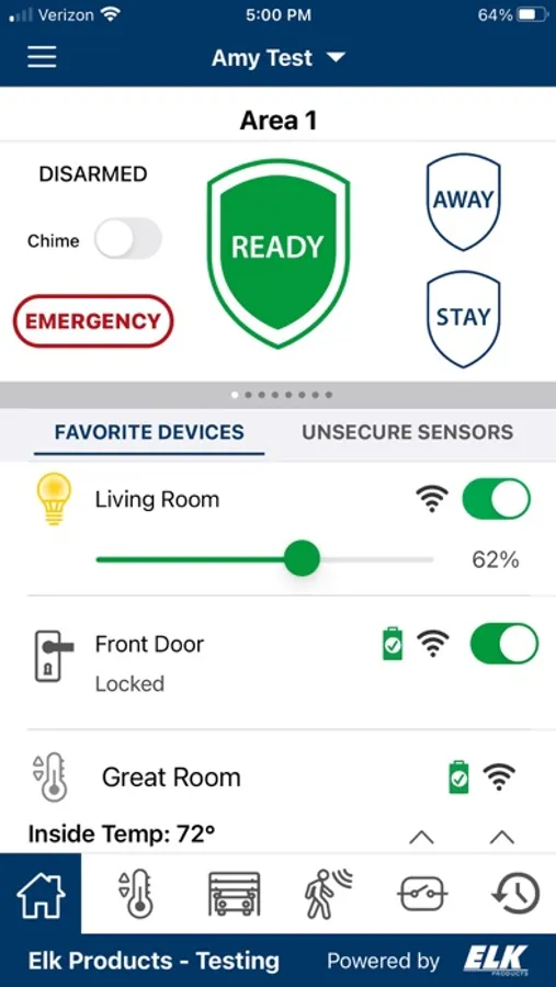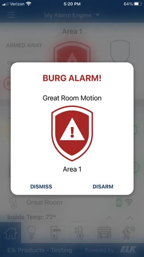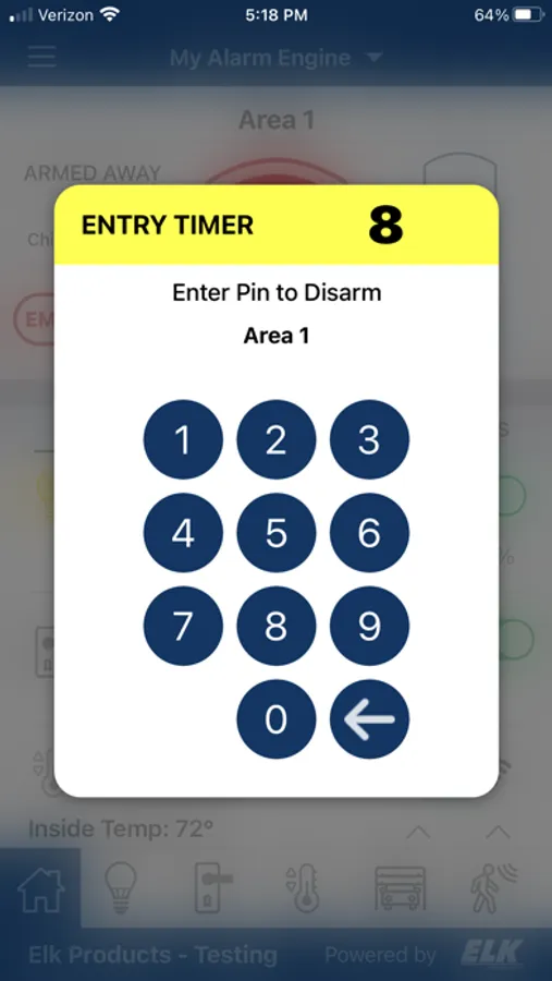 Note: This app requires a compatible ELK E27 Alarm Engine with an ElkConnect Interactive subscription plan. Available features may vary based on system equipment and configuration. For more information, contact your ELK certified installer or visit www.elkproducts.com.
