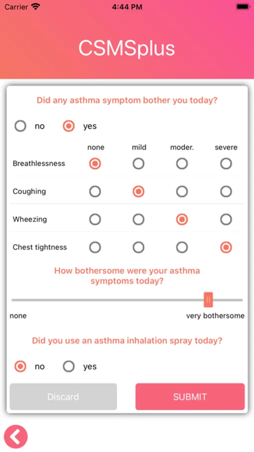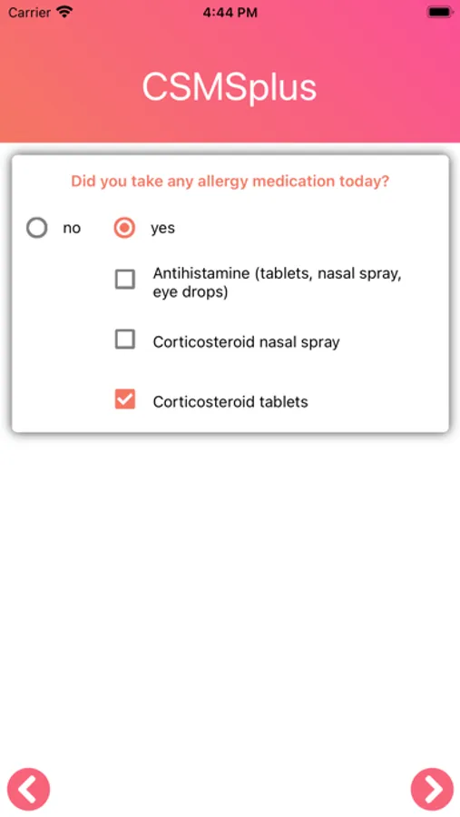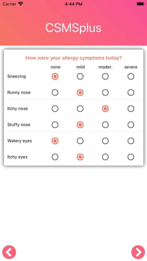 In the CSMSplus App, this parameter is combined with the validated Visual Analogue Scale for the rating of allergy symptoms. This enables the patient to individually determine his allergy symptoms on a day-to-day basis.