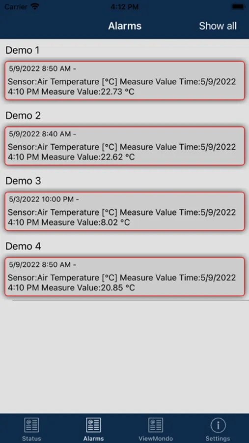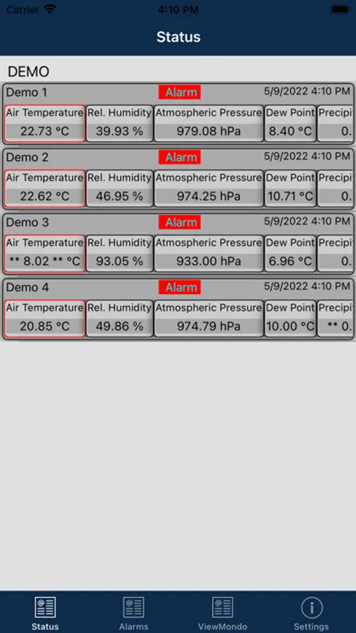 Receive notifications based on your ViewMondo alarm settings. View station status and measure values for all your stations, and access the ViewMondo user interface on your mobile device.