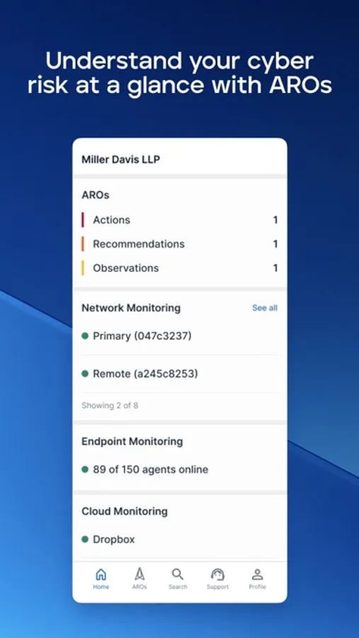 Receive immediate alerts for threats, vulnerabilities, and other security-related risks, triaged by Covalence, to understand and improve your security. Review, track, and respond to important AROs on-the-go. ARO triage is faster and easier than ever with the Covalence Portal app.