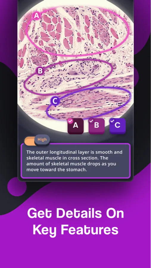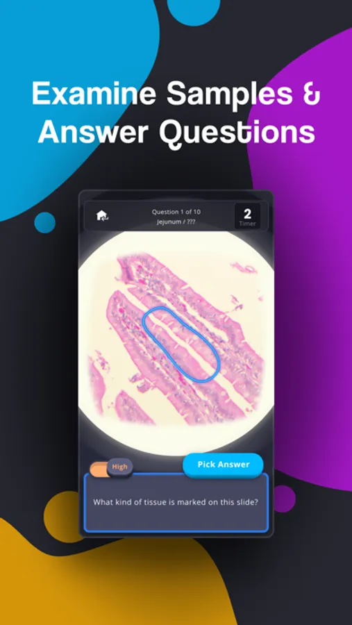 • Test your histology knowledge in game mode with three difficulty settings.