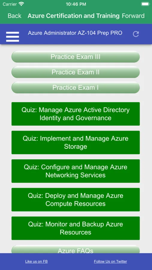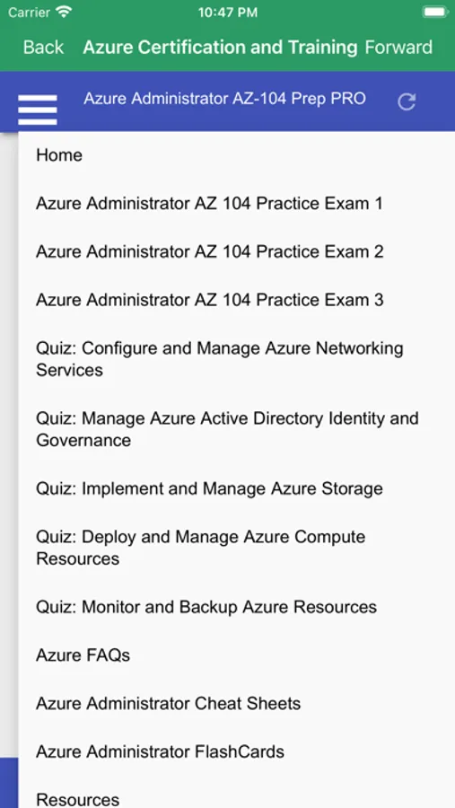 This App helps you prepare for the Microsoft Azure Administrator AZ 104 Certification with Quizzes and Practice exams. Quizzes are organized by up to date exam categories.