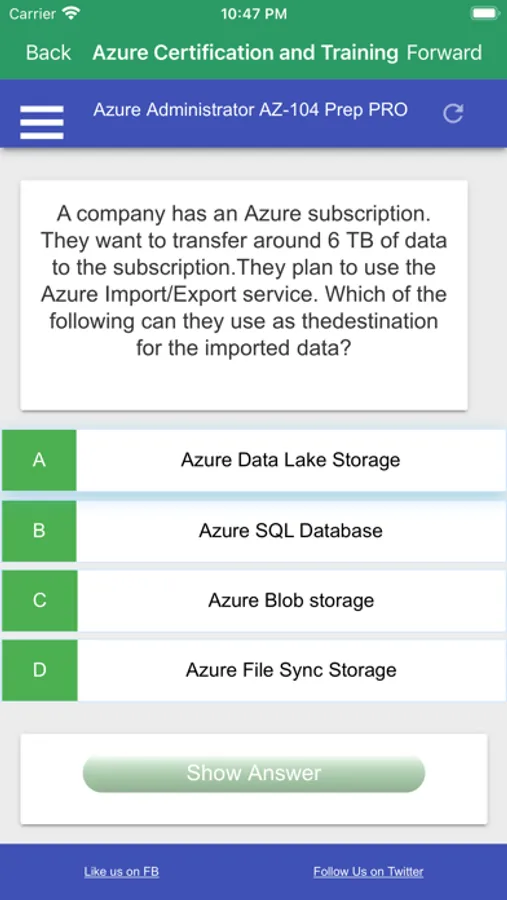 Note and disclaimer: We are not affiliated with Microsoft. The questions are put together based on the certification study guide and materials available online. The questions in this app should help you pass the exam but it is not guaranteed. We are not responsible for any exam you did not pass.