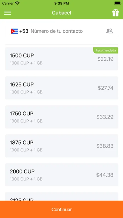 Envía tus recargas instantáneas a Cubacel (en solo 2 minutos) a cualquier hora y desde cualquier parte del mundo. Recarga Cubacel y Nauta desde 250 CUP. Programa el BONO de las Recargas Dobles desde 500 CUP. Somos los más baratos en Recargas a Cuba.