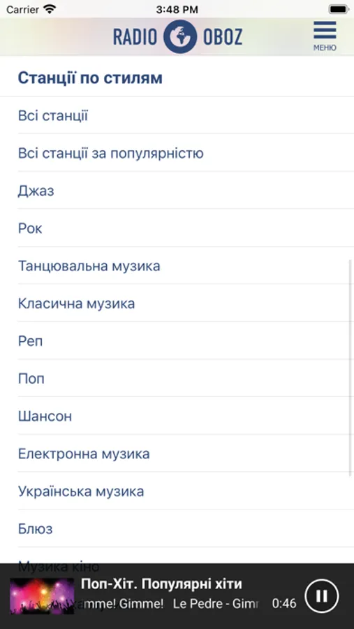 Radio Obozrevatel is the first service of music Internet stations in Ukraine. This round-the-clock "broadcasting" in the network of more than 80 stations, which presents all styles and trends of modern and classical music - from jazz and classical music, rock music and disco to RnB, hip-hop, rap. Latina, bossa nova, Ukrainian, French, Italian, oriental music and children's songs and fairy tales are presented separately. On our website and in the application, you will find music for every taste, from any era.