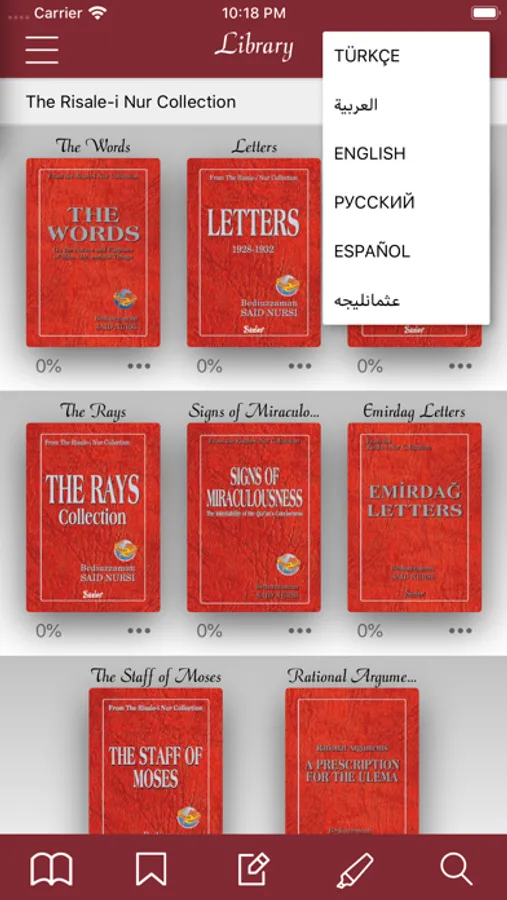 ● You can read 'Risale-i Nur Collection' in (عA) 6 different languages.