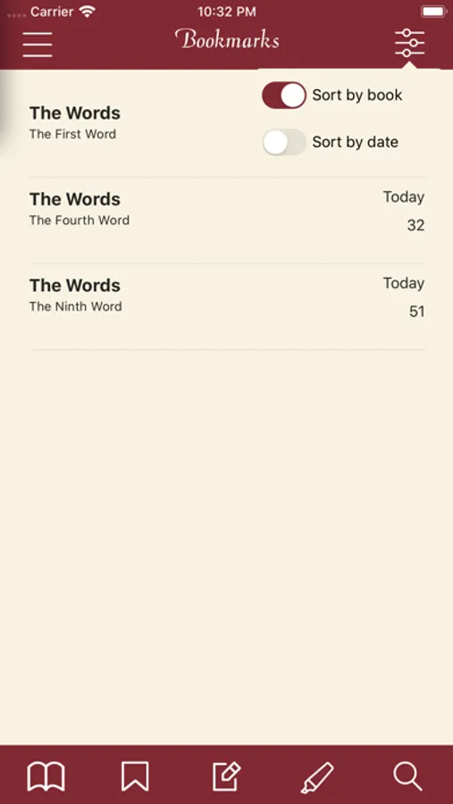 ● You can see bookmarks in a book or all books and go to the mark you want.