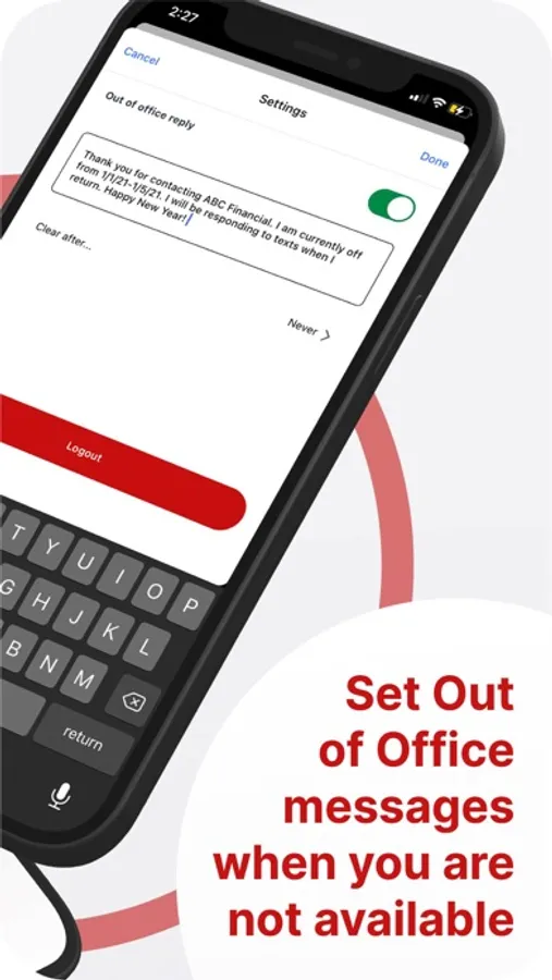 • an Out of Office option. You can set this up to automatically send a reply if a client messages you while you are unavailable. You can also set the date/time when this Out of Office response clears.