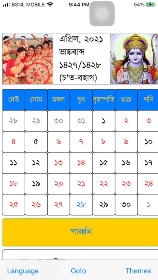 The most important feature of this calendar application is that this is completely in Assamese. It also shows the information in English.