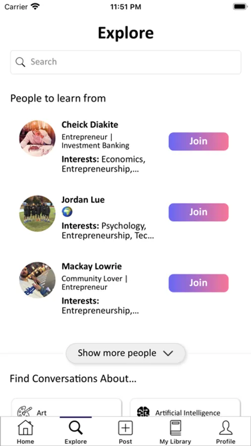Connect with your intellectually curious peers to gain insight on the books and articles they’re reading, podcasts they’re listening to, and videos they’re watching. Build a community with growth-oriented people around valuable and productive content in the things you’re most passionate about. A platform to get inside the minds of the thought leaders within your respective interests!