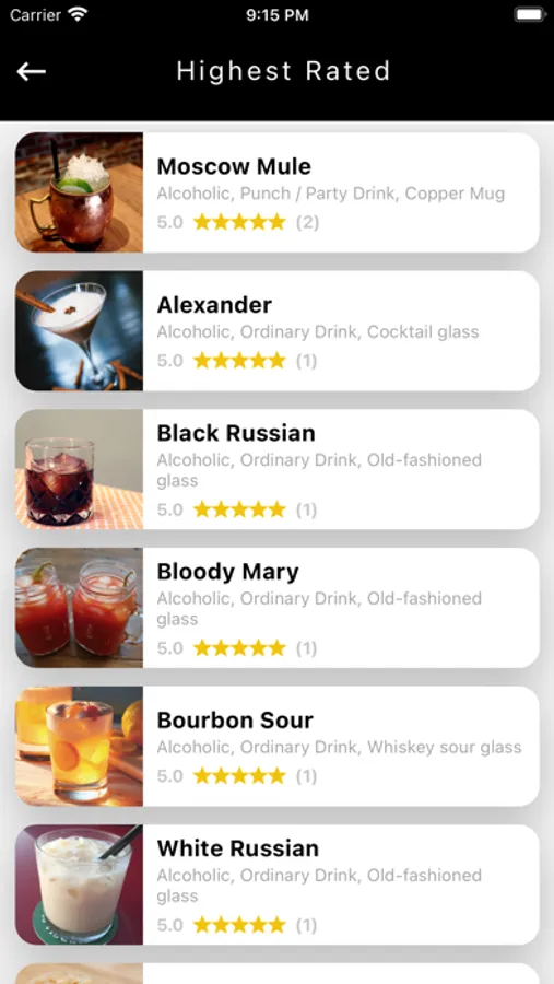 In the main page you can find lists of the recently added Drinks, the familiar and well-known Drinks, the highest rated Drinks by users and also random Drinks.