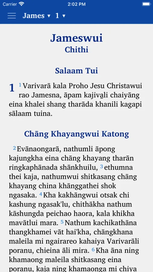 This app provides a translation of the New Testament Book of James of the Bible in the Tangkhul Naga language. It is produced by Bibles International, the Bible Society, Translation and Publishing Department of Baptist Mid-Missions.
