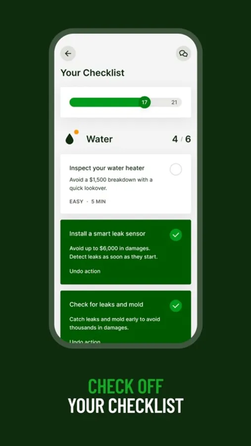 • Take control. Help prevent small issues from becoming big problems with access to actionable, personalized home maintenance checklists and action plans.