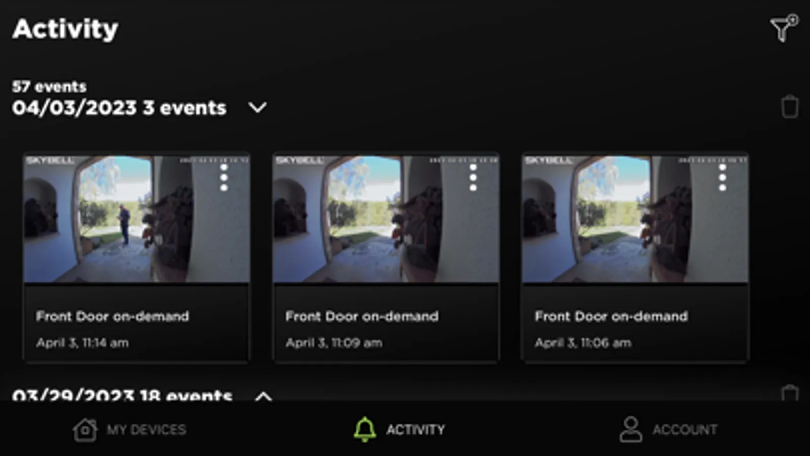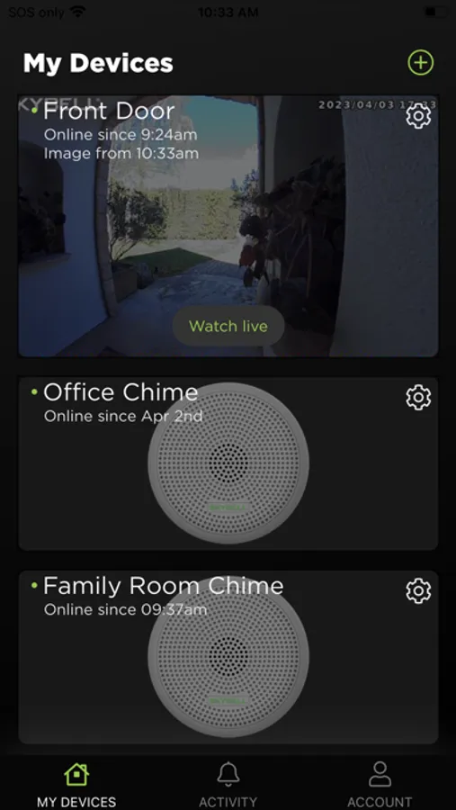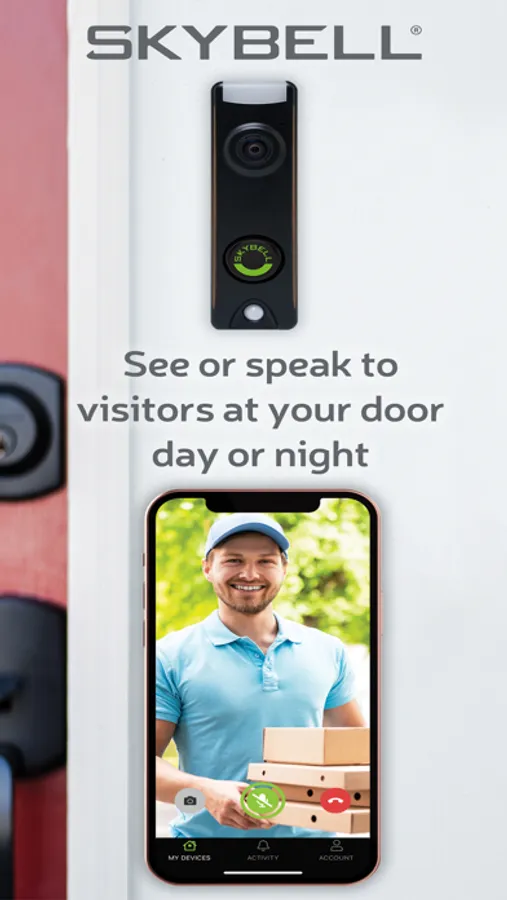 Get instant alerts on smartphones, tablets, and smartwatches when someone is at your door or motion is detected in HD video with two-way talk on any of SkyBell’s Video Doorbells or Cameras. SkyBell sends a live video feed to your devices so you can hear and speak to the person at your door or in the house, whether at home, at work, or on the go - day or night.