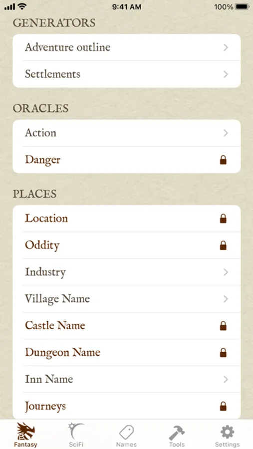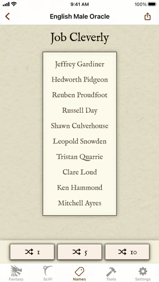 - Multi genre - Fantasy and Sci-Fi specific generators, and modern names from 9 different nationalities and regions. Genre specific themes included when unlocking a genre pack.