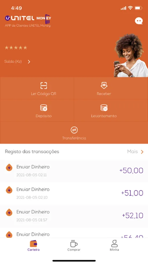 UNITEL Money é a aplicação para telemóvel para a utilização e gestão da nova carteira digital de Angola! Nela poderás abrir a tua conta UNITEL Money e carregar a carteira com um depósito, fazer levantamentos, transferências e compra de recargas UNITEL. É fácil e é para todos!
