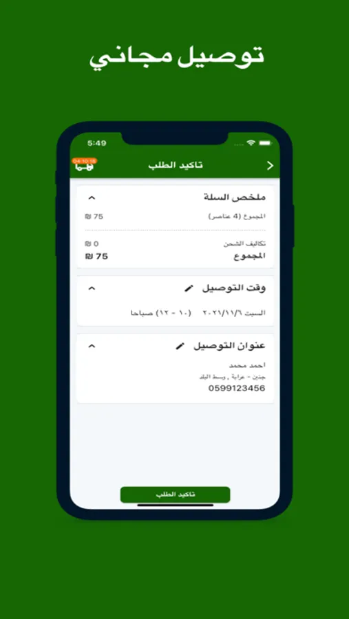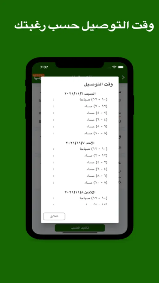 2. قم بإدخال عنوانك واختيار وقت التوصيل المتاح.