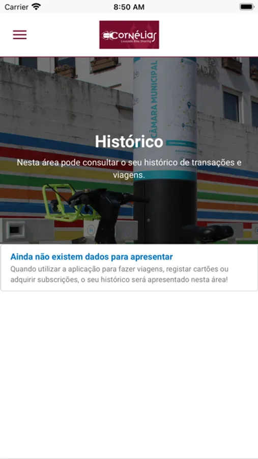 • VISUALIZAR HISTÓRICO: A qualquer momento consegue consultar o seu histórico de viagem e saber onde iniciou a sua viagem e onde a terminou.