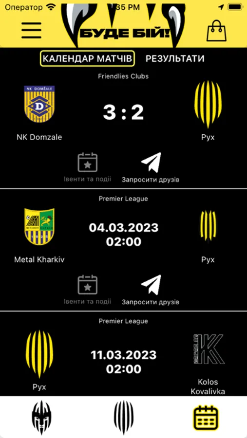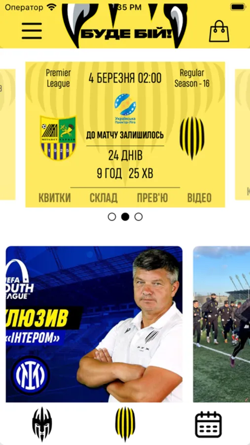 - можливість придбати квитки та абомененти на домашні матчі «жовто-чорних»;