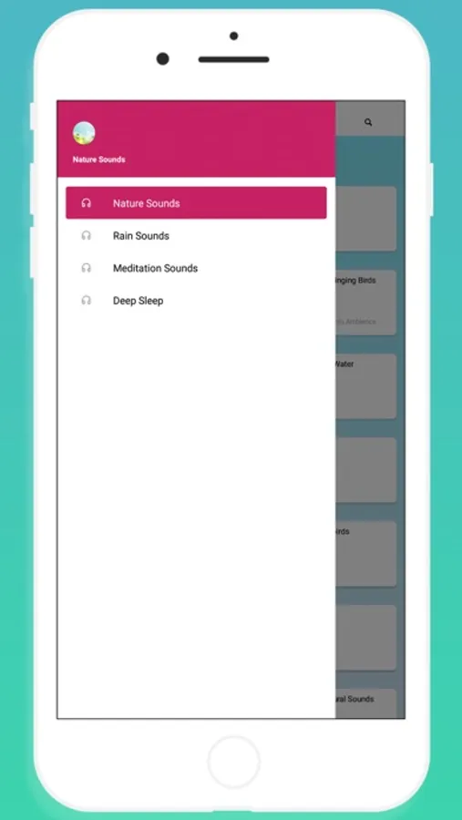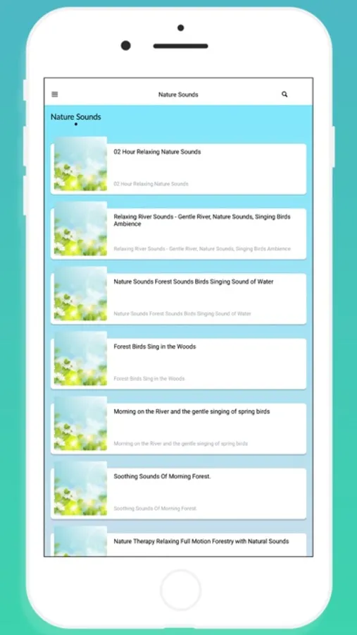 The application nature sounds includes a variety of sounds: birds songs, wind, water, forest.