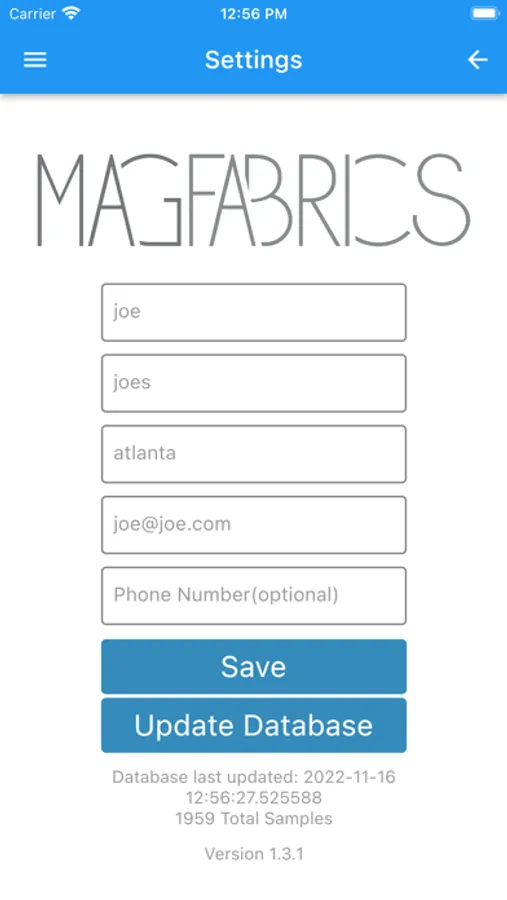 Under Settings, you can change your contact information in case you want to submit full scan data to us. We won't share this information with any third parties and we only receive this information if you run a full scan and choose to send us the scan data. Data entered in Settings is stored only in the app and never sent to us or saved on our servers unless you choose to submit a full scan session to us.