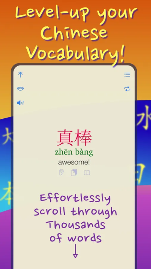 • Unique way to view words, as easy as scrolling through your favorite social media feed!