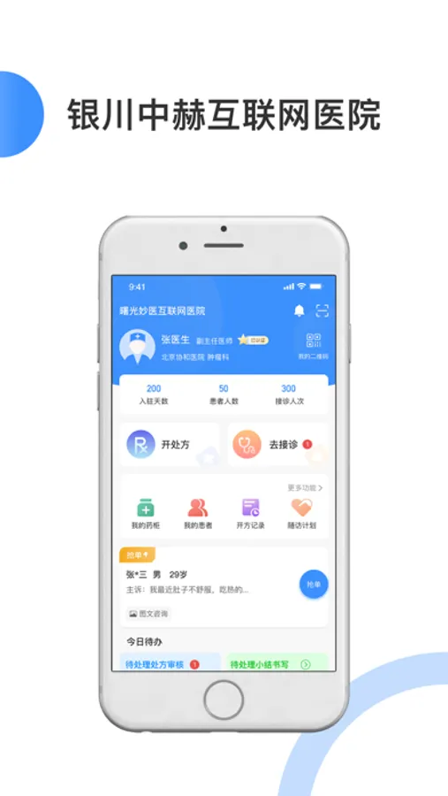 银川中赫互联网医院医生端是以患者需求为中心,以医生为主要推动力,推广咨询、诊疗、健康管理等相结合的服务平台,致力于为医院、医生、患者、药店等机构和用户群体提供互联网医疗+医药产品服务。引导医生开设线上诊室,给患者提供便利就诊、复诊购药、手术咨询、康复咨询、药品配送、健康管理等服务,用平台思维与模式聚才集智、赋势赋能,打造线上线下联动互联网医疗服务平台。