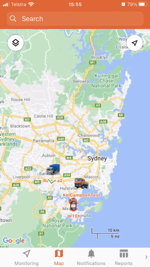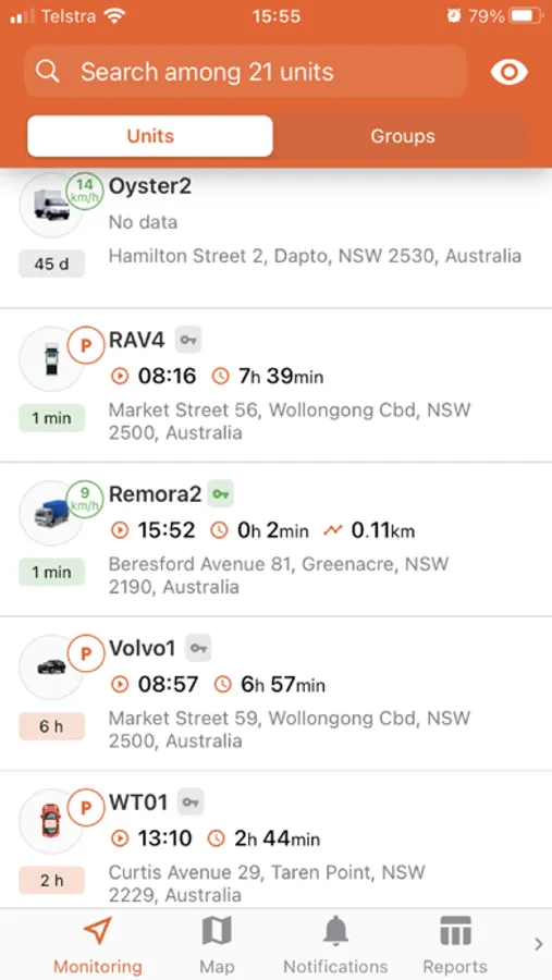 - Map view. View your units, geo-fences, tracks and event markers on the map. Both standard and satellite view are available.